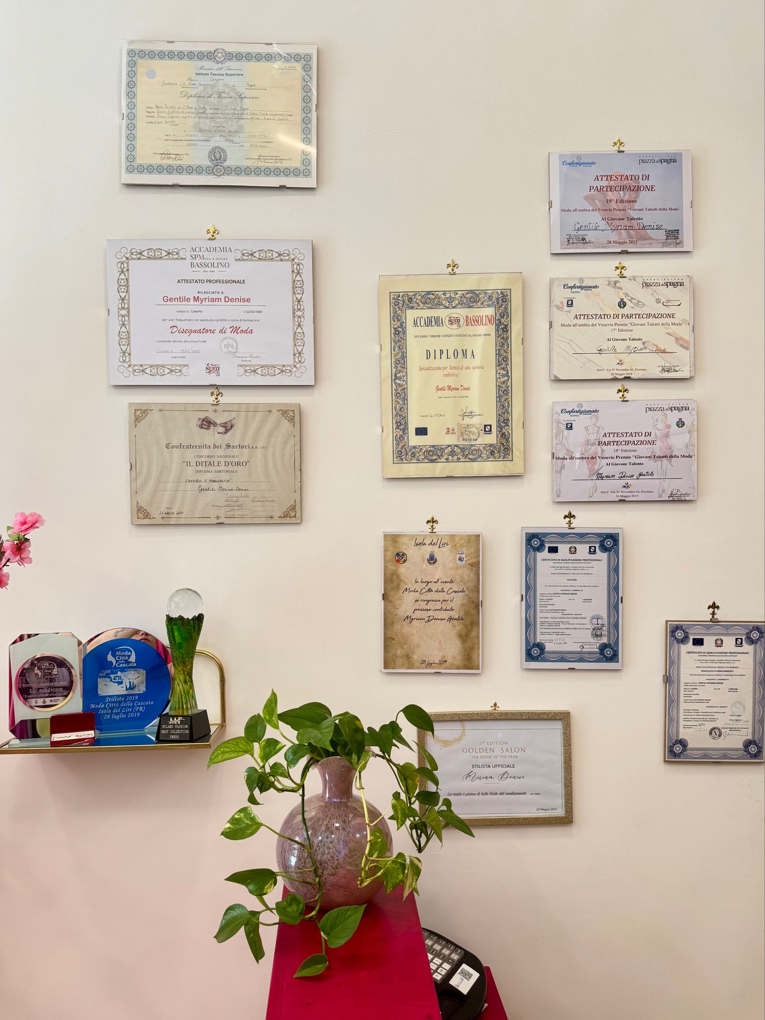 La sua dedizione l'ha vista trionfare in importanti concorsi di moda: due volte vincitrice del premio "Ago d'Oro" a Napoli (2019), vincitrice del concorso "Moda città della Cascata" ad Isola del Liri (2022) e premiata nel 2023 come miglior lavoro nella categoria "Sartorialità e Manualità" dalla Confraternita dei Sartori di Napoli. Ha inoltre partecipato a un reality televisivo, conquistando il primo posto per i migliori lavori presentati. Nel 2024, durante la Milano Fashion Week, ha presentato una collezione di alta moda, ricevendo il riconoscimento per il "Miglior abito a tema".